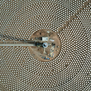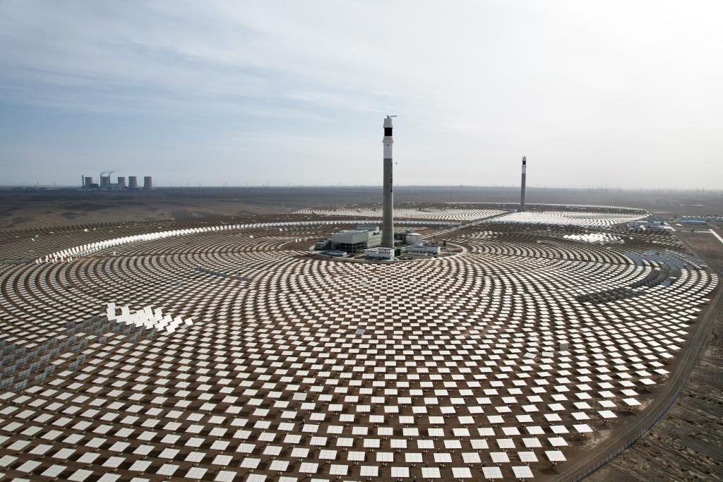 近2.7万面定日镜以同心圆的方式紧密环绕