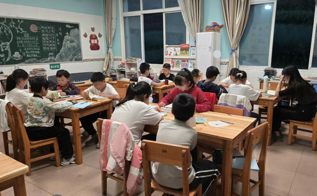 晚上9点,学生宿舍里“一千零一夜”睡前故事广播响起。夜空下,微风拂过窗外的油菜花田,携着淡淡的花香,知识的光芒如繁星般闪烁,照亮了孩子们梦的入口。