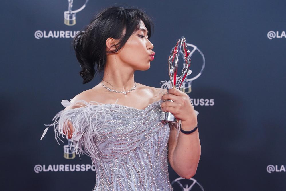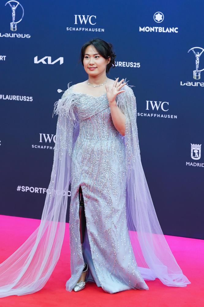 ↑2025年4月21日,蒋裕燕出席2025劳伦斯世界体育奖颁奖典礼红毯仪式。新华社记者 彭子洋 摄