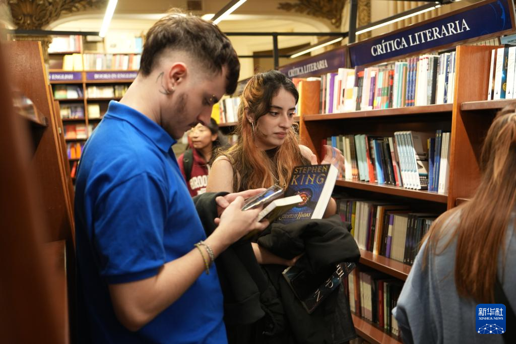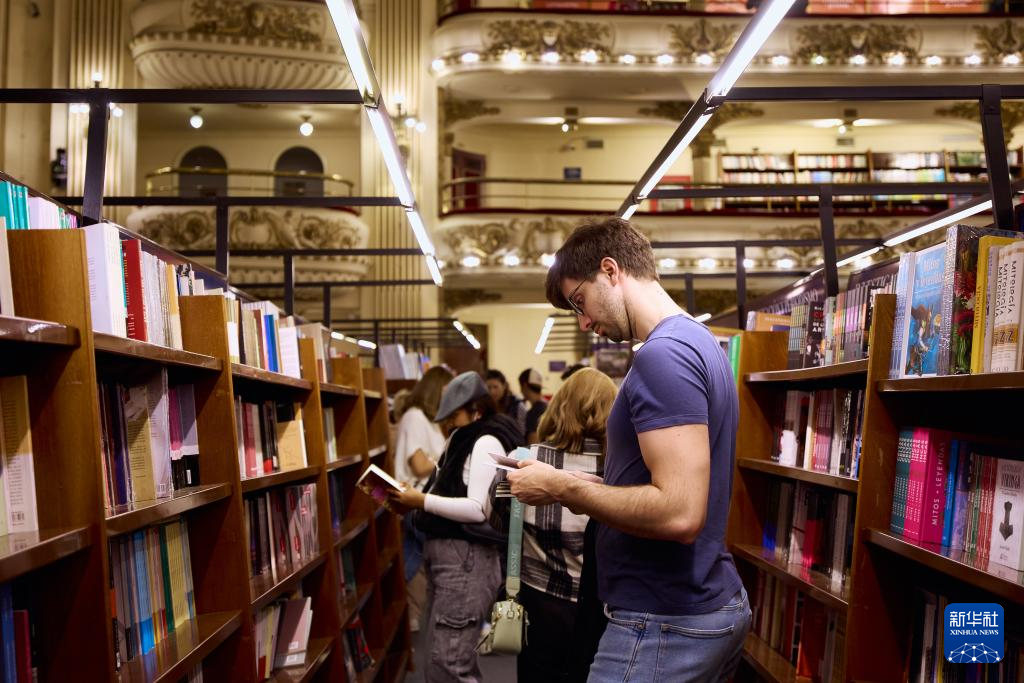 4月21日,读者在阿根廷布宜诺斯艾利斯的雅典人书店内挑选图书。新华社记者 张铎 摄
