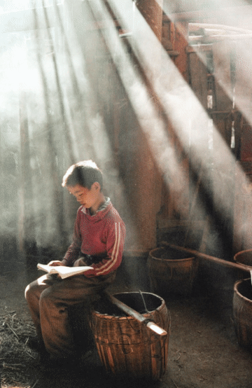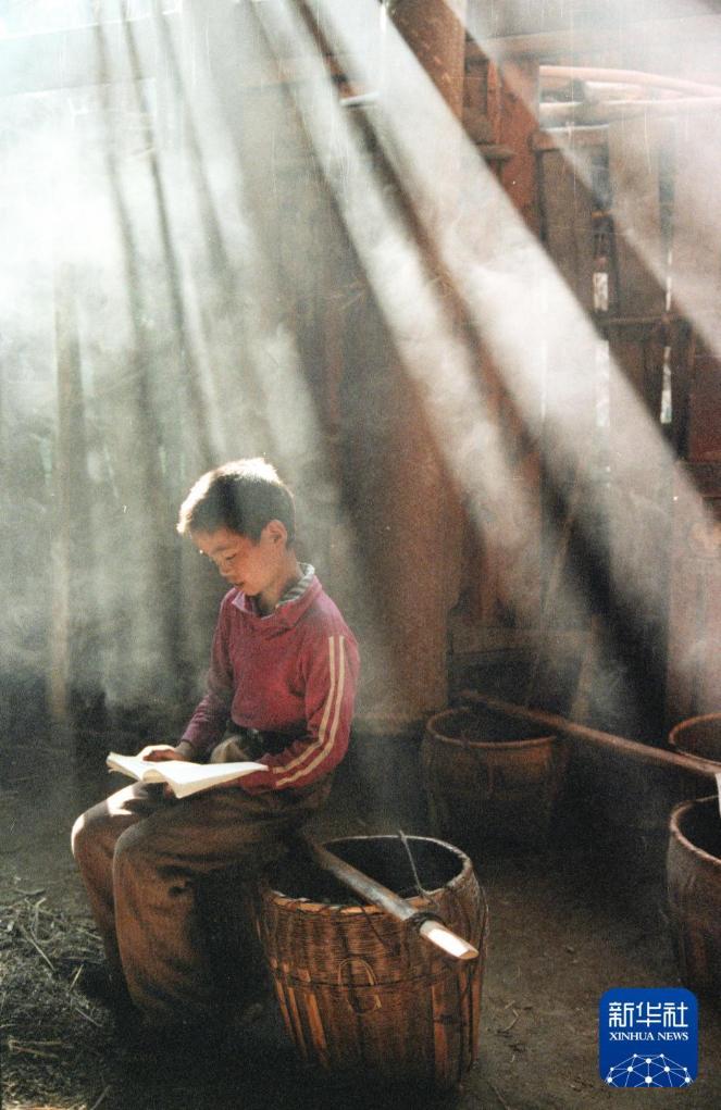 1990年,在贵州省松桃苗族自治县,一位小朋友正在读书。
