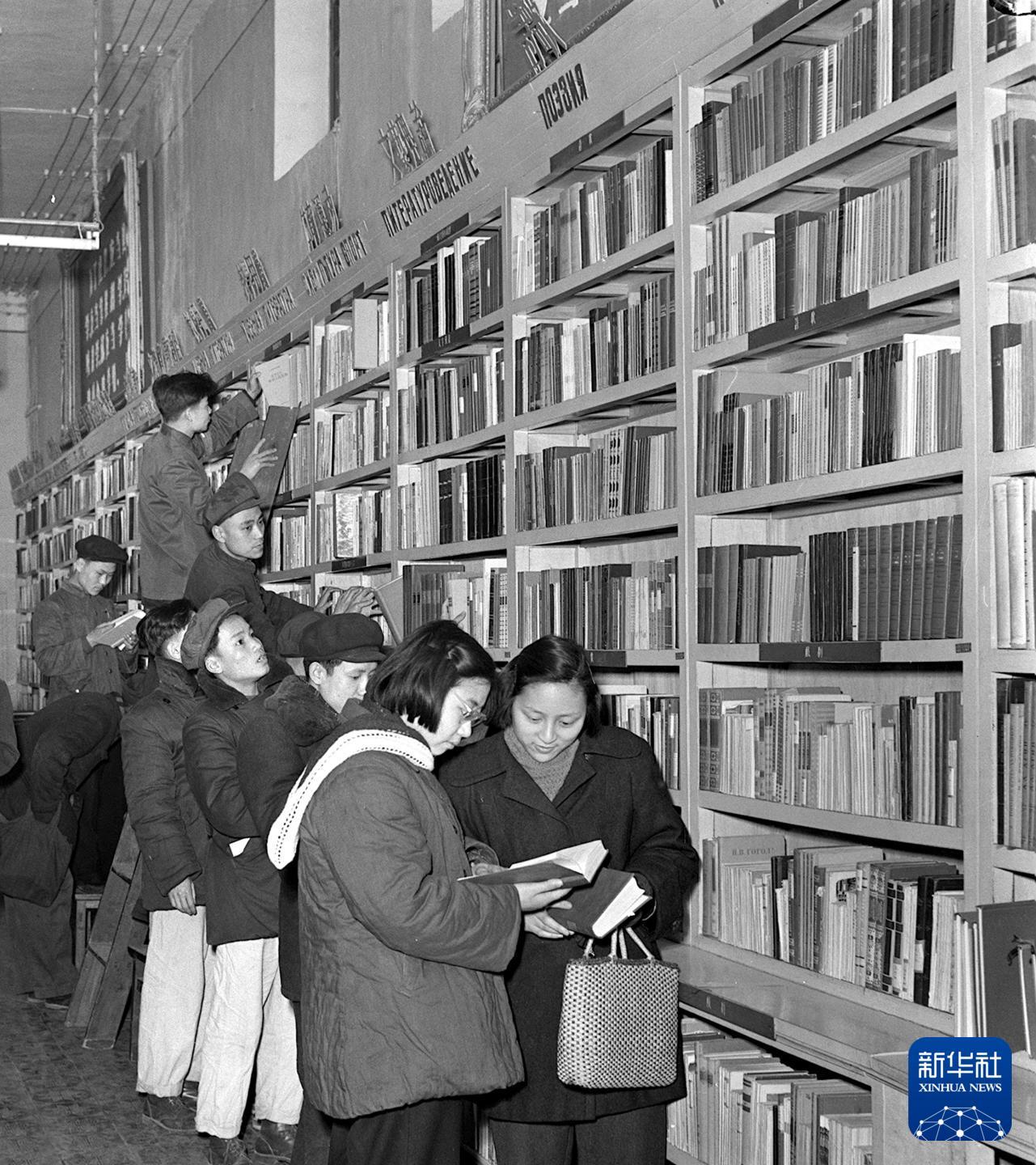 1956年,人们在北京王府井国际书店选购图书。