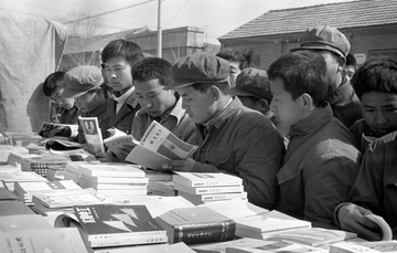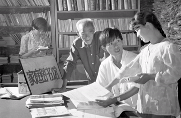 1996年,山西省永济市张坊村村民在农民家庭图书馆里研读书籍、讨论问题。