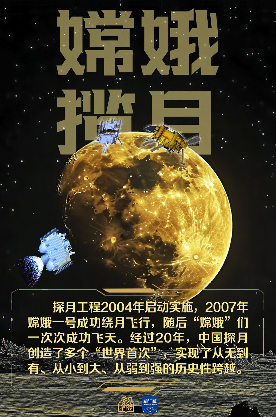 同年9月,总书记在人民大会堂接见探月工程嫦娥六号任务参研参试人员代表时强调,探月工程成果凝结着我国几代航天人的智慧和心血,从一个侧面展示了我们这些年在科技自立自强上取得的显著成就,充分展现了中国人的志气、骨气和底气。