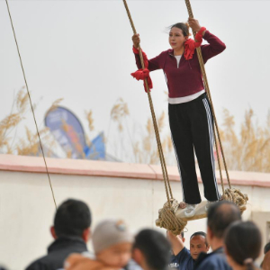 这是关乎勇气的挑战,同时也是一年一度的新疆于田县少数民族传统体育运动会上唯一全部由女性参与的项目。