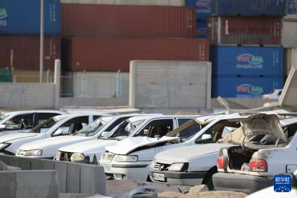 这是4月26日在伊朗沙希德拉贾伊港的爆炸现场拍摄的被毁车辆。新华社发(伊朗迈赫尔媒体集团供图)