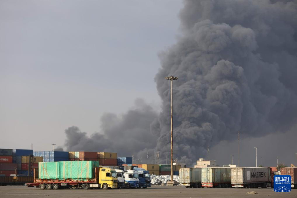 4月26日,伊朗沙希德拉贾伊港的爆炸现场冒出浓烟。新华社发(伊朗迈赫尔媒体集团供图)