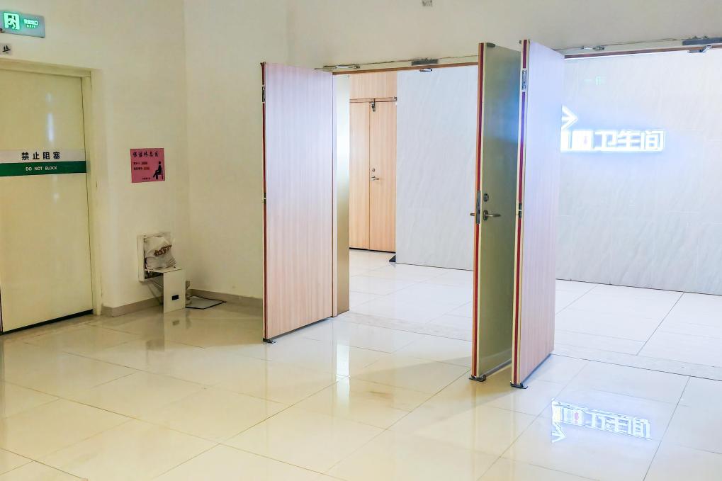 这是在广西某市一家商场内拍摄的保洁员临时休息处(4月18日摄)。该商场除设有固定休息室外,还在距卫生间不远的地方安装折叠椅,供保洁人员临时休息。