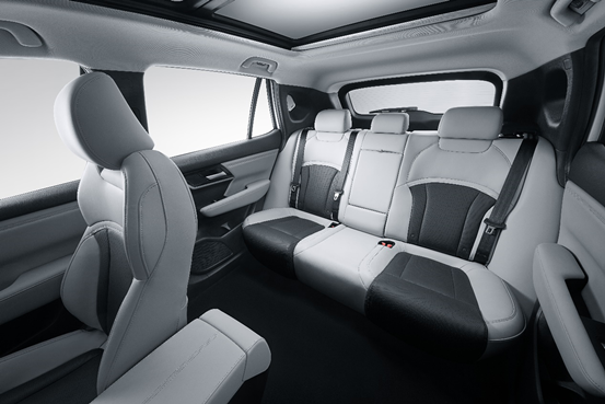 阿图柯作为A+级合资纯电SUV展现了三菱风格的硬派形象。首先在外观上,承袭三菱“Dynamic Shield”设计语言,硬朗、大气的家族式前格栅,搭配刚劲有力的侧面腰线和悬浮式车顶延伸至车尾,整体外观看起来硬朗且不失时尚。阿图柯车型也采用了当下流行的感应式隐藏门把手和大尺寸阳光全景天窗,增加了外观的未来科技感。