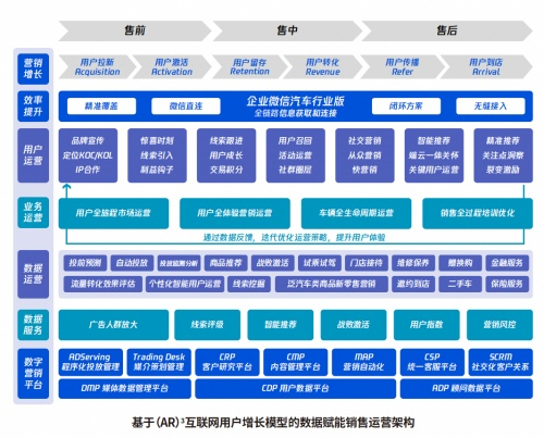 如上汽奥迪借助腾讯企业微信汽车行业版数字营销中台,以企业微信+智能客服助力品牌与用户直连,开展车机端、手机端和云端的多端一体化的运营服务,挖掘用户全生命周期价值,在线索量、转化率及订单数三个维度均获得提升。