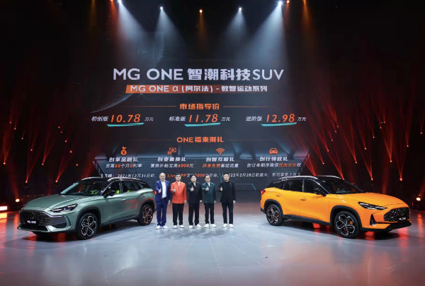 12月2日,MG旗下首款“智潮科技SUV”MG ONE上市。此次上市的车型为数智运动系列MG ONE-α,共有3个版本供用户选择:初创版10.78万元、标准版11.78万元、进阶版12.98万元。