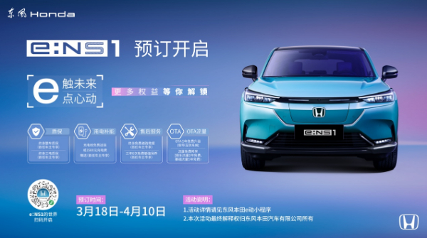 以e:NS1为起点,东风Honda围绕用户全生命周期服务场景,以数字化驱动电动化,正大刀阔斧地推进服务模式创新。线上,e:NS1的预订已在东风本田e动小程序正式开启;线下,e:NS1城市巡展也已在武汉、广州等核心城市商圈陆续布局,线上线下全域互通,为用户带来电动时代的全新购车体验。