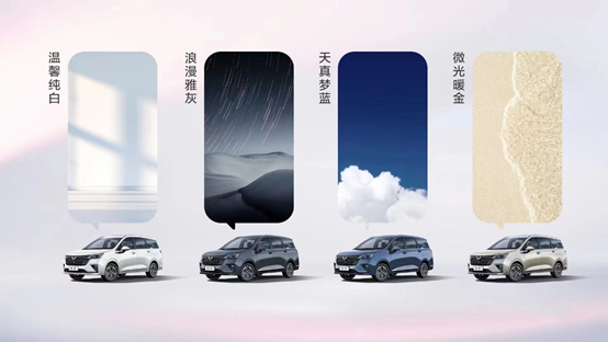 外观方面,五菱佳辰采用翼动美学精致外观设计及剧院式内饰座椅布局,车身为高强钢笼式车身结构设计,高强钢用材占比超64%,全车五门镀锌并采用顶级的六层车漆工艺,防腐更防锈。在色彩选取上,佳辰共推出温馨纯白、浪漫雅灰、天真梦蓝和微光暖金四款车色以及曜石黑、榛果棕2款内饰配色,整体营造温馨明亮的视觉效果。