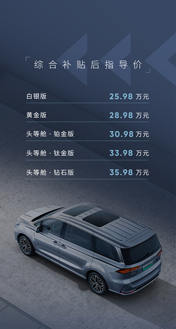 2022年8月20日,荣威iMAX8 EV正式上市,共推出5款配置,综合补贴后售价为25.98万元-35.98万元。