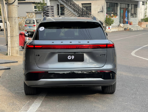 来到车尾,小鹏G9设计简洁,贯穿式尾灯与前大灯遥相呼应,黑色烤漆包围让整车看起来更有质感。