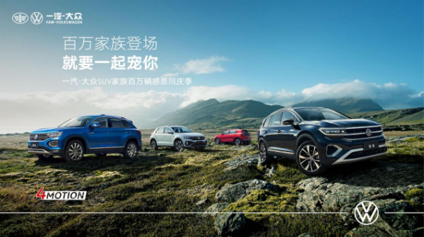 “把轿车的成功经验带到SUV领域,全面发力SUV市场”,一汽-大众如是说,事实上,他们也真的做到了。一汽-大众迅速搭建起由紧凑型SUV探歌T-ROC、中型高端SUV的探岳Tayron、小型SUV探影Tacqua以及大型6座/7座SUV揽境Talagon组成的SUV军团(按上市时间序列排布),用时4年,在已发布的4款SUV车型的合力之下,一汽-大众登上SUV百万销量俱乐部。