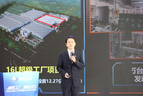 仪式现场动力总成事业部副总经理李欲晓现场作了超级工厂介绍:解放动力超级工厂,是一汽解放“十四五”期间在无锡的第一个重大投资项目,项目总投资12.27亿元人民币,建筑面积3.8万平方米,具备2万台16L发动机生产能力和6万台天然气发动机试验能力。