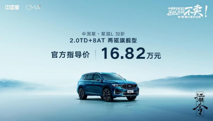 活动现场,吉利汽车销售公司总经理范峻毅宣布赵文卓成为“中国星大使”,并正式公布了星越L 8AT两驱旗舰型的市场指导价为16.82万元,为用户提供了又一全新选择。