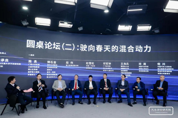 在上海交通大学教授、汽车研究院副院长殷承良的主持下,广西大学机械工程学院教授、博士生导师、俄罗斯工程院外籍院士陈勇,清华大学教授、航空发动机研究院副院长、清华-壳牌清洁交通能源联合研究中心主任帅石金,赛力斯集团副总裁段伟,中国一汽研发总院首席赵雪松,广汽研究院动力总成技术研发中心副主任祁宏钟,重庆青山工业总经理助理、中国兵器装备集团传动技术研究院常务副院长王海兵,岚图汽车动力系统高级总监邓湘,中国汽车工业协会离合器委员会理事长、珠海华粤董事长倪川围绕着“驶向春天的混合动力”这一主题进行了交流讨论。