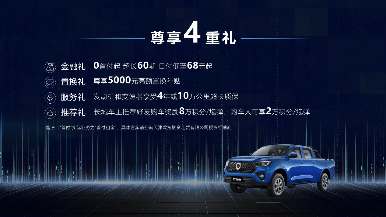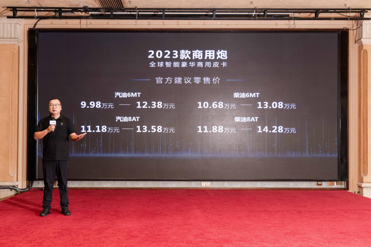 5月18日,长城智能豪华商用皮卡2023款商用炮在广州焕新上市,汽油车型官方指导价9.98万元-13.58万元,柴油车型官方指导价10.68万元-14.28万元,同时,用户购车尊享“金融礼、置换礼、服务礼、推荐礼”四大购车礼。