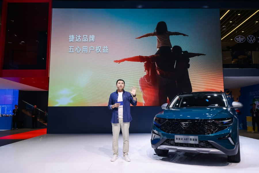 车展现场,新捷达ABT限量版新车正式上市,售价13.59万元-14.49万元,为消费者带来耳目一新的个性化选择;捷达品牌还正式推出“五心用户权益”,与用户共同打造美好生活。