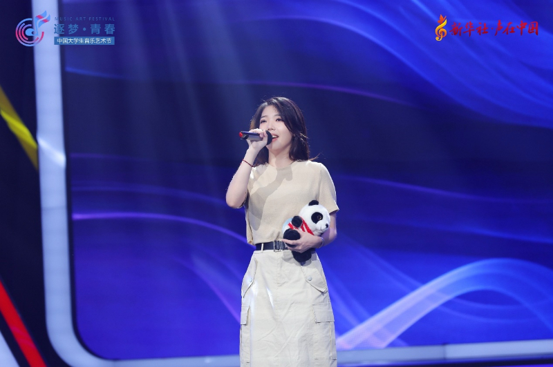 中国大学生音乐艺术节新生代知音召集人王靖雯在全国半决赛舞台上演唱