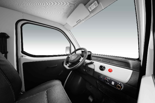 灵巧身材也有大能力,首先,大力牛魔王D02延续了D01灵动又不失科技感的时尚外观,整车尺寸仅为3495*1200*1860mm,1米多的车身宽度与快递三轮不相上下,加上约4m小转弯半径,丝毫不影响走街串巷。在承载能力方面,相比于同级别新能源MINI卡,它的大容量货厢容积可以达到2.5m³,装载空间是标准快递三轮车的2倍,承载重量更是达到了265kg。此外,大力牛魔王D02货厢采用了小货车的侧开门和后开门的设计方式,厢内配备有照明灯,装卸货物更加方便,改装也更加灵活。