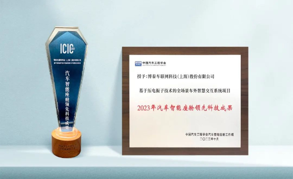 博泰车联网申报的“基于压电振子技术的全场景车外智慧交互系统”项目成功入选2023汽车智能座舱领先科技成果。