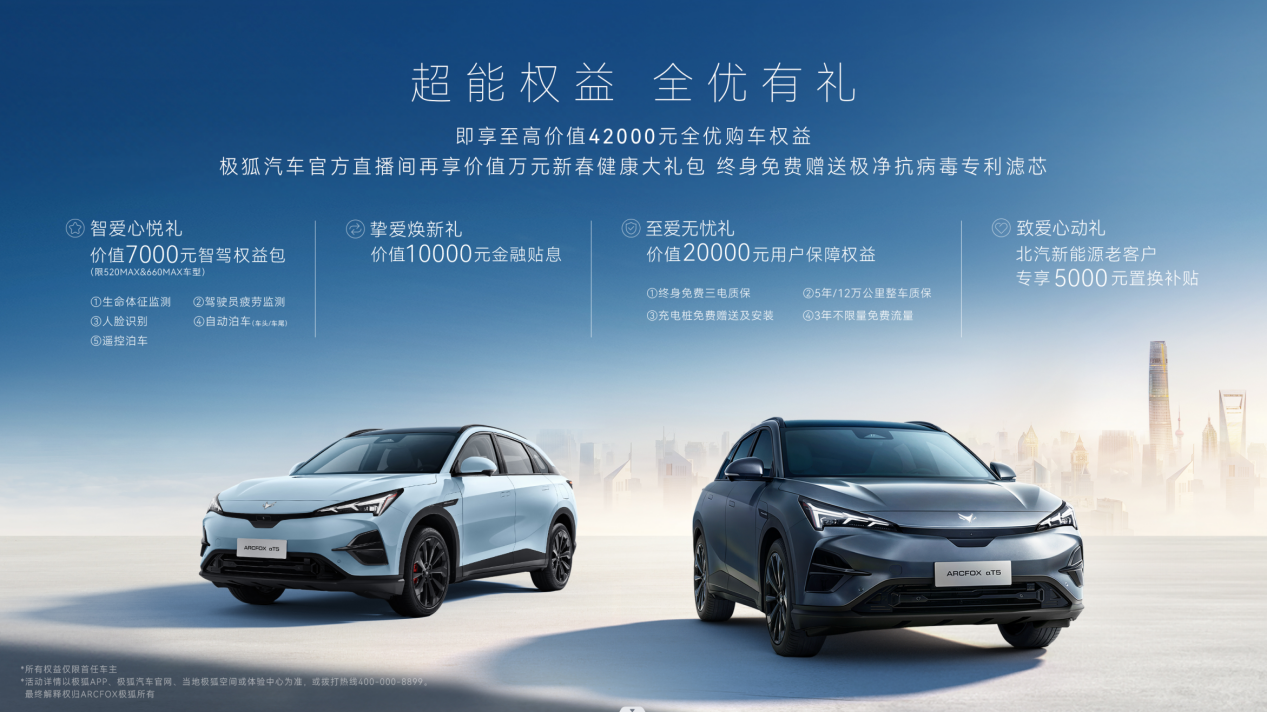 12月27日,极狐阿尔法T5上市,官方指导价15.58万-19.98万元。同时,官方推出了至高价值42000元的全优购车权益,包括价值7000元的智爱心悦礼;价值10000元的挚爱焕新礼;价值20000元的至爱无忧礼以及老客户专享5000元的致爱心动礼。