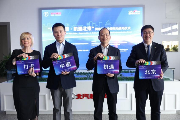 随后,外交部新闻司参赞王晓林,中央广播电视总台国际在线总裁范建平,北汽集团副总经理、北汽股份党委书记、董事长陈巍及北马其顿Faktor新闻网资深记者Anita Buhovski共同打板,宣布2024“打卡中国·机遇北京”网络国际传播活动正式启动。