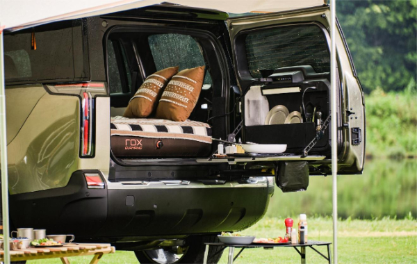 对于热爱露营的玩家而言,极石01能够在配件系统的支持下化身百变房车,进一步拓展旅途中的万千精彩。业界首创的车载尾门厨房系统自带照明操作台,220V供电、直饮热水、操作台、储物收纳等一应俱全,美食创意随心发挥。7座车型可以快速放倒二、三排座椅,配合定制床垫变成一张2米×1.3米的全平大床。支起车边帐,13平米户外客厅勾勒出的无限可能,也在天地之间徐徐展开。