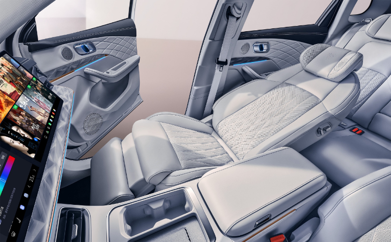 车内环境安全方面,哪吒L座舱内饰采用多种高级绿色生态材料,座椅皮革通过OEKO-TEX®STANDARD100认证(婴幼儿级产品),无毒亲肤、耐污耐磨。