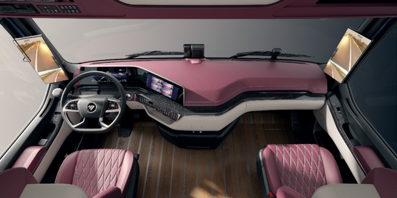 智能化方面,依托福田汽车强大的技术体系,欧曼银河9系列车型推出了更多功能、更高等级的智能驾驶配置清单,供用户自由选择。首批智能车型搭载10个摄像头、5个毫米波雷达、1个激光雷达和1个高算力域控制器,实现车辆HWP高速领航等28+智驾功能。同时,欧曼银河9还搭载了行业领先的智能座舱系统,涵盖800项以上的信息娱乐功能、400项以上的车云网联信息和500项以上的信息安全防护措施,全面覆盖商用车“行车驾驶”“停车休息”和“车辆管理”的三大应用场景,实现了驾驶员与车辆的全面交互与掌控,让用户的每一段行程都尽享领先的智能科技体验,实现国内高端重卡从智能走向智慧的跃阶。