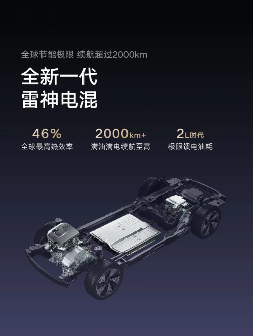 年内将发布的全新一代的雷神超级电混,是吉利培育发展新质生产力、发力智能电动市场的集中展现。据了解,吉利全新一代混动发动机热效率已突破了46%,并获得了权威机构中汽研华诚认证中心的“能效之星”认证。搭载全新一代雷神超级电混的车型可在满油、满电的状态下,实现超过2000公里的续航,最低馈电油耗进入了“2L”时代。