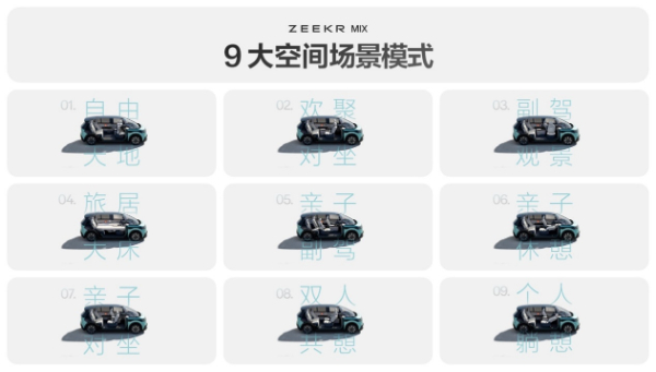 极氪MIX提供9大空间场景模式