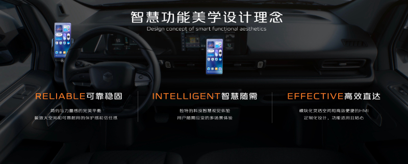 在造型设计方面,长安凯程坚持智慧功能美学设计理念,从设计源头为用户带来智慧功能体验。一是通过理性清晰、简洁纯粹的功能化设计语言,体现简约与力量感的完美平衡。通过功能导向、可靠耐久的材质应用,赋予产品极致大空间和可靠耐用的保护感和信任感;二是运用创新数智立方体和悬浮胶囊几何设计,为产品注入独特的科技智慧视觉体验,并通过高效的交互设计满足多场景体验需求;三是围绕用户和场景,以效率为核心,打造模块化空间和便捷的HMI,提供定制化设计,满足专业需求,带给用户功能适用且贴心的价值体验。