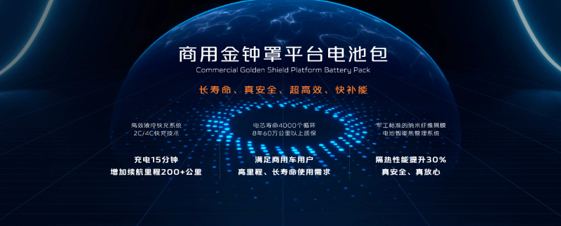 在电池设计方面,长安凯程凭借长安汽车电池研究院的成熟研发管理体系,商用金钟罩平台电池包具备长寿命、真安全、超高效、快补能的技术特点。电池包采用高效液冷快充系统,可拓展搭载2C、4C快充技术,用户只需充电15分钟,即可获得200公里以上的续航里程增加。电芯采用多功能涂层包覆负极材料以及电解液成膜改性,提高寿命至4000个循环,可为用户提供8年60万公里以上质保,满足商用车用户高里程、长寿命使用需求。