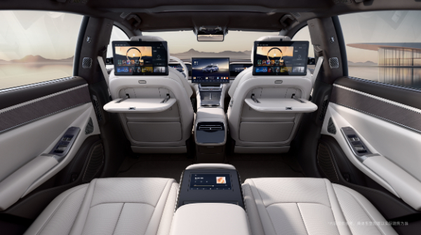 “双倍豪华”是腾势Z9内饰最大的亮点之一。腾势Z9配备10向电动调节的后排双浮感舒适座,支持按摩、加热、腿托调节等功能,双桌板、双12.8英寸多媒体屏和7英寸扶手屏、双50W无线快充、弹出式双杯托、双柔光化妆镜、前后智能冷暖双冰箱,以及百万级后排双侧窗电动遮阳帘等8个双重豪华舒享,既满足商务场景下的办公需求,也提供家庭场景下的娱乐享受,让腾势Z9舒适不挑人,豪华不设限。