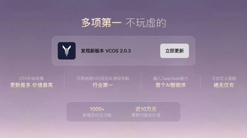 第一最,最大规模的OTA升级:新增及优化功能超1000项,涵盖导航、语音、生态、系统桌面、智能体验等多个模块;