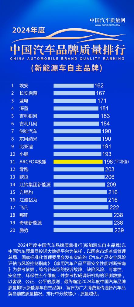 此次蓝电汽车登上中国汽车质量网2024年度新能源“中国汽车品牌质量排行榜”前三甲,不仅证实了蓝电在质量、可靠性以及用户满意度方面的卓越表现,更凸显了赛力斯质量管理体系的高标准。未来,蓝电汽车将始终秉持“一切为了用户”的理念,不断提升产品质量和服务水平,致力于为用户带来更高品质的用车体验,为中国家庭提供值得信赖的购车之选。