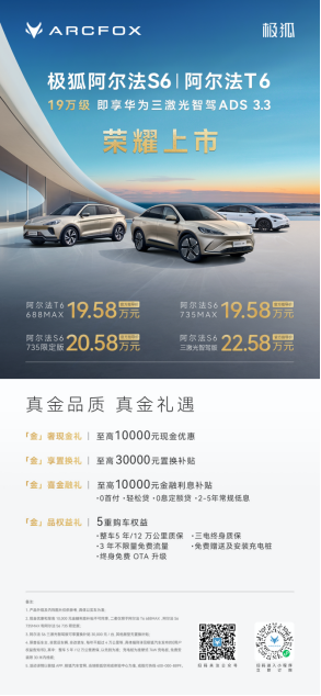 4月2日,极狐汽车阿尔法新6系上市,新车配备了3激光雷达、搭载华为乾崑智驾ADS 3.3。