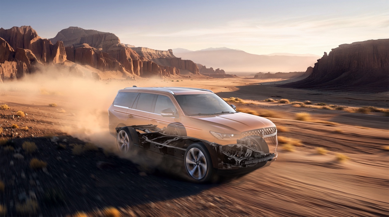 全新一代林肯领航员八横两纵的高强度全铝车身,上车身铝合金占比超过97%,为车身提供更好的刚性、耐久性和抗腐蚀性,操控性和脱困性兼得,纵横天地也无所畏惧。