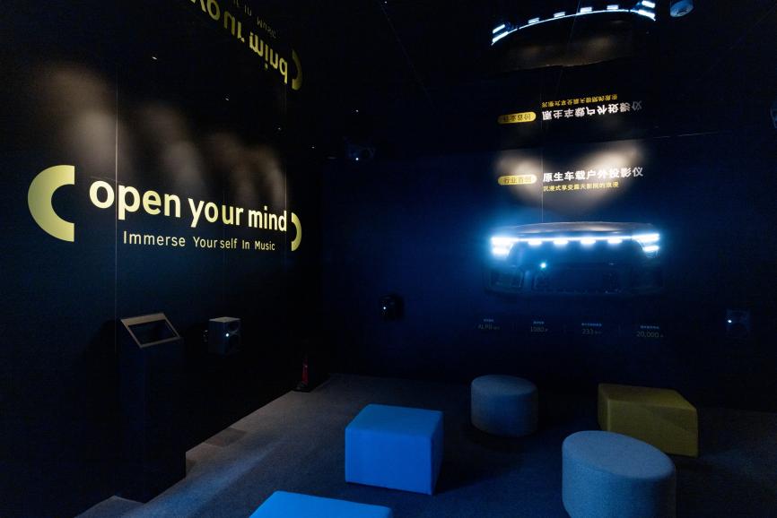 smart携手世界公认领先的专业音频厂商森海塞尔共建一座移动艺术影院,配合车规级投影仪,将展台的一隅变成了沉浸感十足的影音视听殿堂。用户可以在这里感受森海塞尔典范音响系统的高端魅力,享受天籁之音。