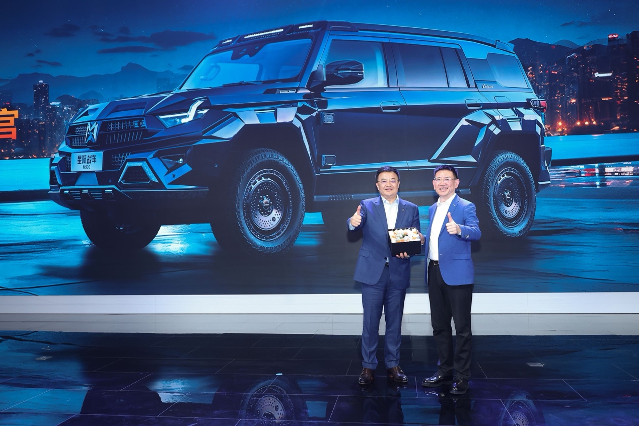 活动现场,东风汽车集团有限公司党委常委、副总经理尤峥为罗伦士M900星际战车首位车主高德红外董事长黄立先生交付新车。
