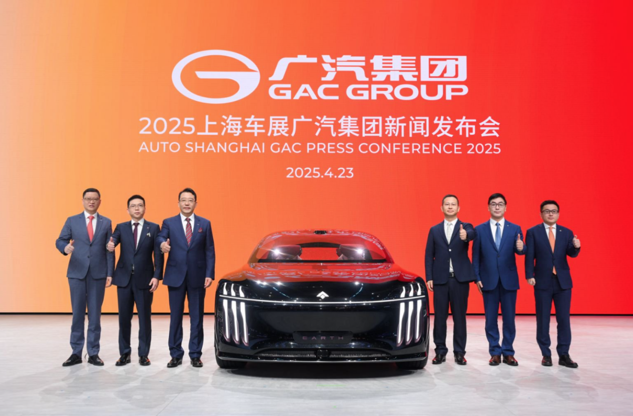 2025上海车展广汽集团新闻发布会与会领导与广汽昊铂全新猎装概念车EARTH大地合影