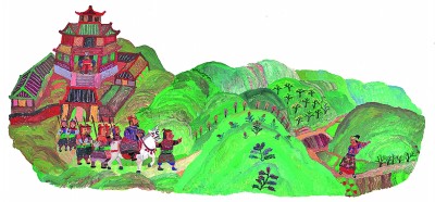 《桃花源的故事》中“便扶向路,处处志之”的场景。光明图片