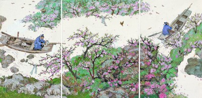 创作中也有困惑,比如画桃林时,她一度产生了“初极狭,才通人”的逼仄之感。“这时候,需要结合语境、文意与历史背景来琢磨与推敲,感受其中的意蕴,最终才能豁然开朗,画出理想中的桃花源。”