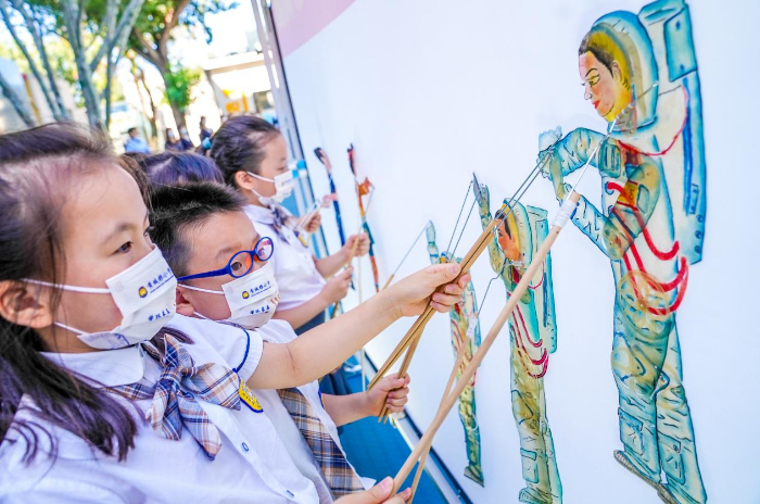 学生们表演皮影戏 供图