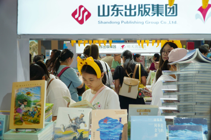 正值暑假,书博会上少儿类图书最受青睐。二十一世纪出版社集团携近千种图书参展,设置“大中华寻宝记”和“世纪绘本馆”主题展馆,吸引众多目光。畅销书“大中华寻宝记”系列新书和文创产品一经亮相便售罄,备受小读者喜爱。