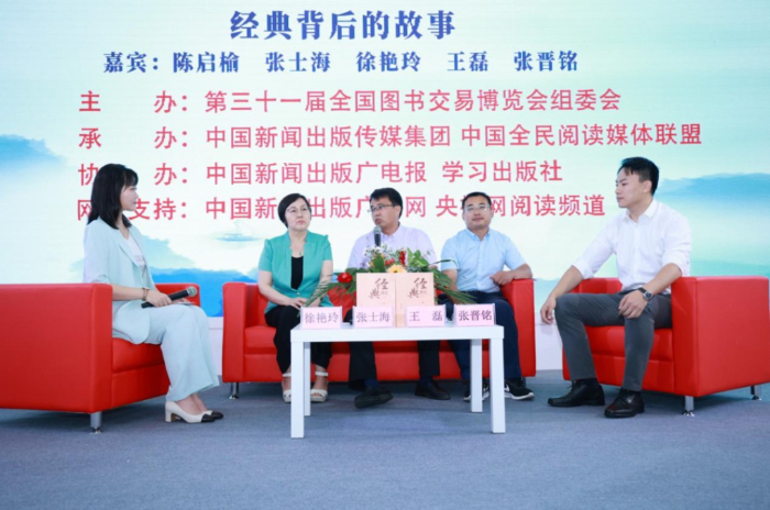 全民阅读“红沙发”系列访谈活动上,学习出版社介绍《经典背后》的出版故事。组委会供图